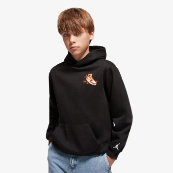Hanoracul pentru copii mari Jordan „Air Jordan Has Landed” Pullover, cu grafic inspirat de reclama originală Air Jordan din ziar, este o piesă esențială pentru iubitorii de ținute sport. Are o croială relaxată cu umeri lăsați, detalii cu nervuri care mențin căldura și buzunar tip cangur, perfect pentru confort și funcționalitate zilnică.
