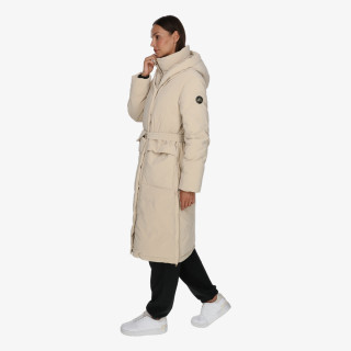 Mont Kamet este o jachetă pentru femei realizată dintr-un material de micro-nailon moale și ultra-ușor, remarcat datorită proprietăților sale hidrofuge excelente. Haina de puf are o siluetă cu curea și este finisată cu un efect mat și strălucitor.