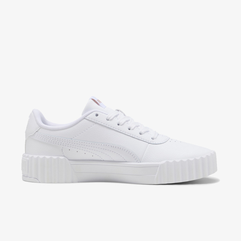 Pantofii sport pentru femei PUMA Carina 3.0 au un design de inspirație retro, cu o notă modernă, prezentând o siluetă simplă, parte superioară din piele moale și accente aurii elegante pentru un aspect șic.